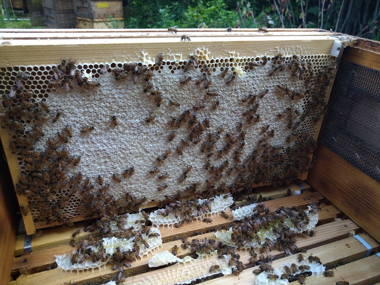蜜枠すべてに蓋がかかるまで採蜜をしない、蜂小屋はちみつの信条です。